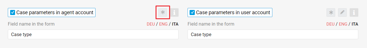 Case parameters in agent account (agent account, specific case, left sidebar);